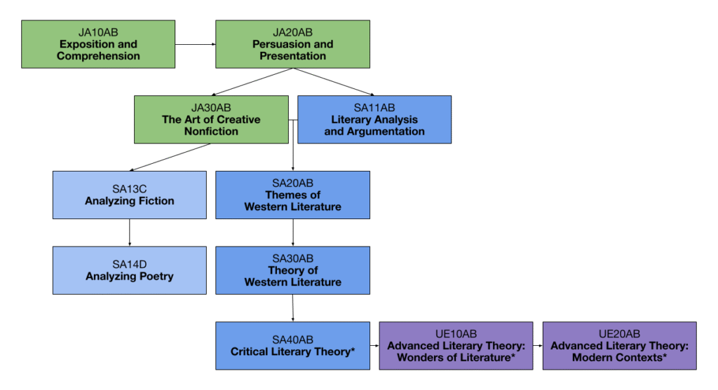 Prior to secondary school, students have six years of English Language Arts instruction in Kindergarten Literacy and Literacy 1–5. Advanced students may condense the curriculum of Literacy 2–4 to two years through the courses Accelerated Literacy 2/3 and Accelerated Literacy 3/4.