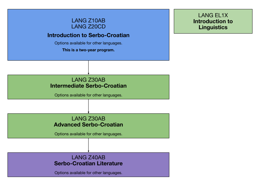Available languages include Serbo-Croatian (Z), Chinese (C), Spanish (S), Arabic (A), Japanese (J), French (F), Korean (K), Greek (G), and Latin (L).